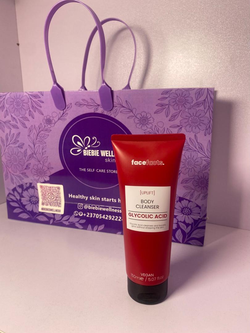 Face Facts Glycolic Acid Body Cleanser is a refreshing exfoliating wash which helps to smoothen and brightening dark areas. It is formulated with Glycolic acid ( AHA), an effective exfoliant that removes dead skin cells, fades rough patches and helps even out skin tone.
